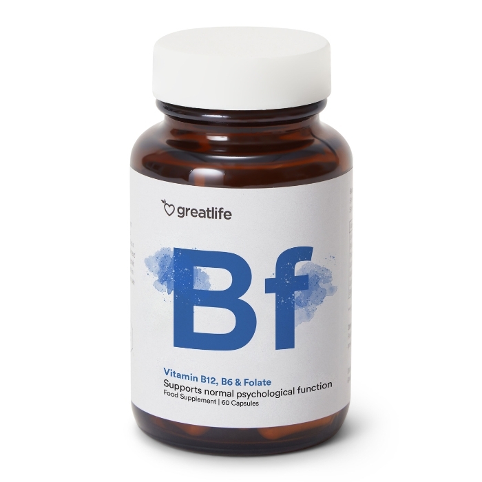 Vitamin B12, B6 & Folat fra Greatlife er en nøje sammensat og veldokumenteret kombination af bioaktive B-vitaminer af højeste kvalitet. Produktet indeholder vitamin B12 som methylkobalamin, vitamin B6 som pyridoxal-5′-phosphate (aktiv form) samt folat som Quatrefolic® (5-MTHF), den biologisk aktive form af folat. Disse vitaminer spiller en central rolle i kroppens energiomsætning, nervesystemets funktion og dannelsen af røde blodlegemer. De bidrager også til normal psykologisk funktion og til at reducere træthed og udmattelse. Vitamin B12, B6 & Folat fra Greatlife er et kosttilskud af høj kvalitet med nøje kontrollerede råvarer, fri for tilsætningsstoffer, forureninger og kunstige stoffer.